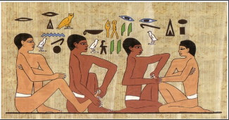En Égypte, à Saqqarah, à côté du Caire, il y a plus de 4000 ans, dans le tombeau d’Ậnkhmahor (un des vizirs du pharaon Téti), appelé également tombeau des médecins. Voici la traduction que l’on retrouve généralement : l’un dit « Ne me fait pas mal» l’autre répond « Je ferai en sorte que tu me remercies »